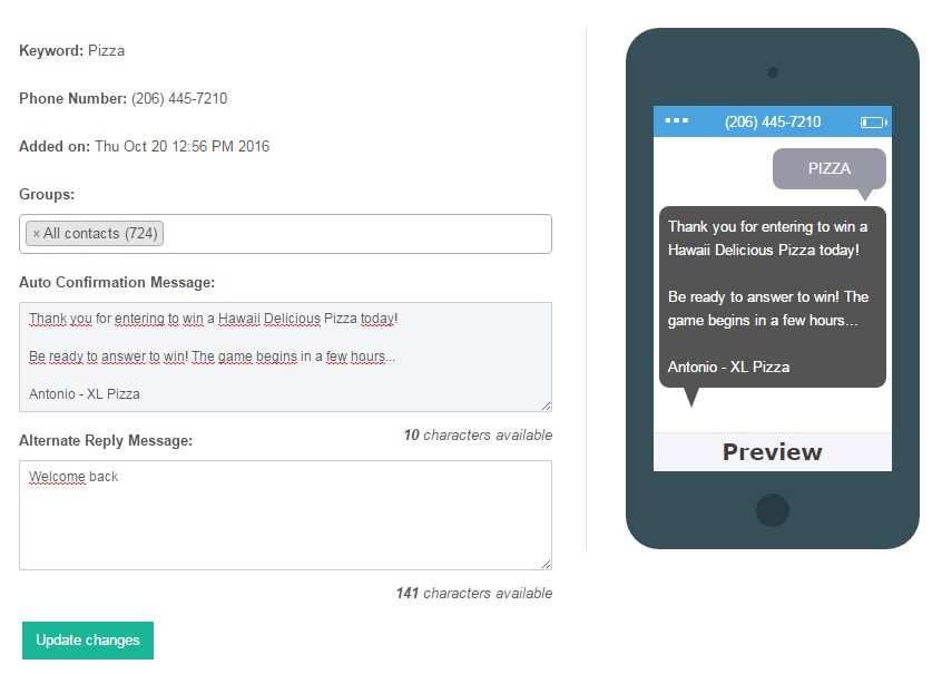 Send your message to a targeted audience, increasing customer engagement and reducing opt-outs. Tag your customers via the control panel or automatically when they respond to a keyword.